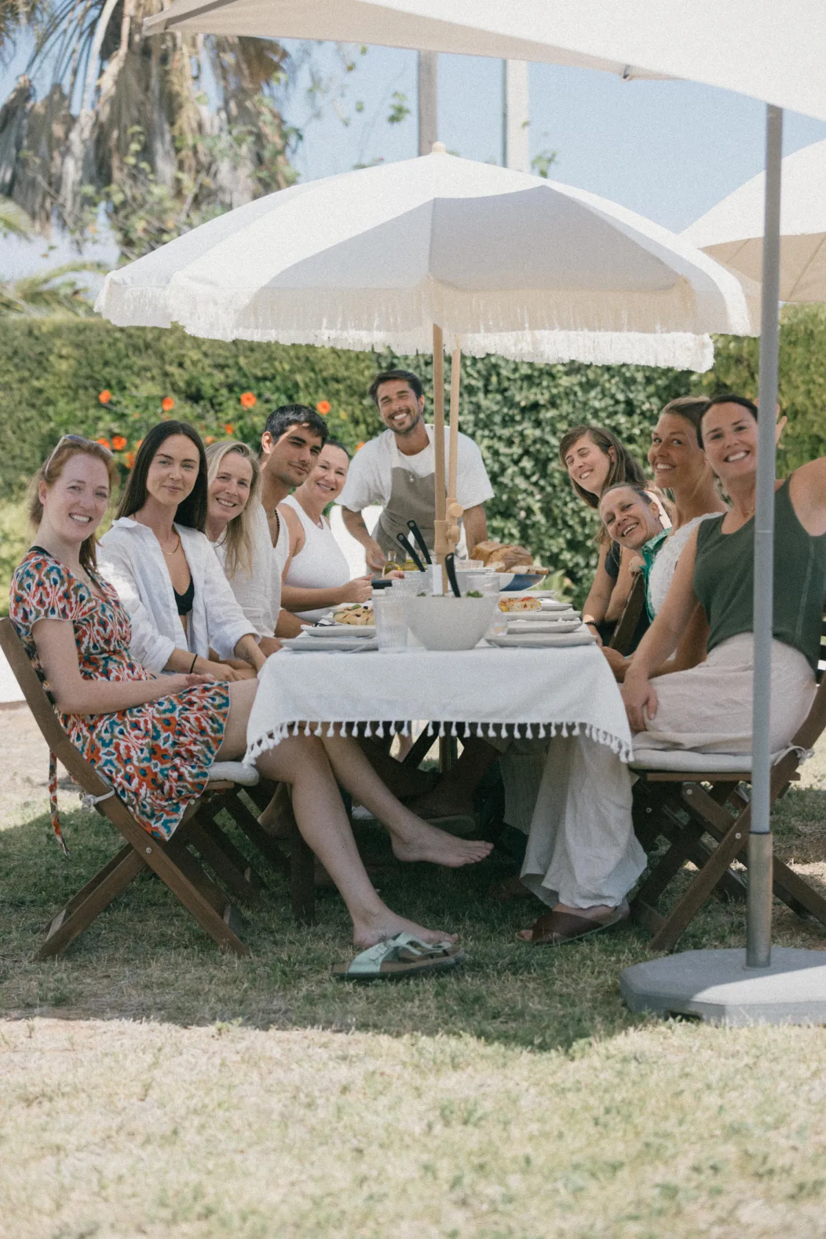As the evening settles in, we share a beautiful dinner together under the open sky, celebrating presence, connection, and the simple beauty of being alive.