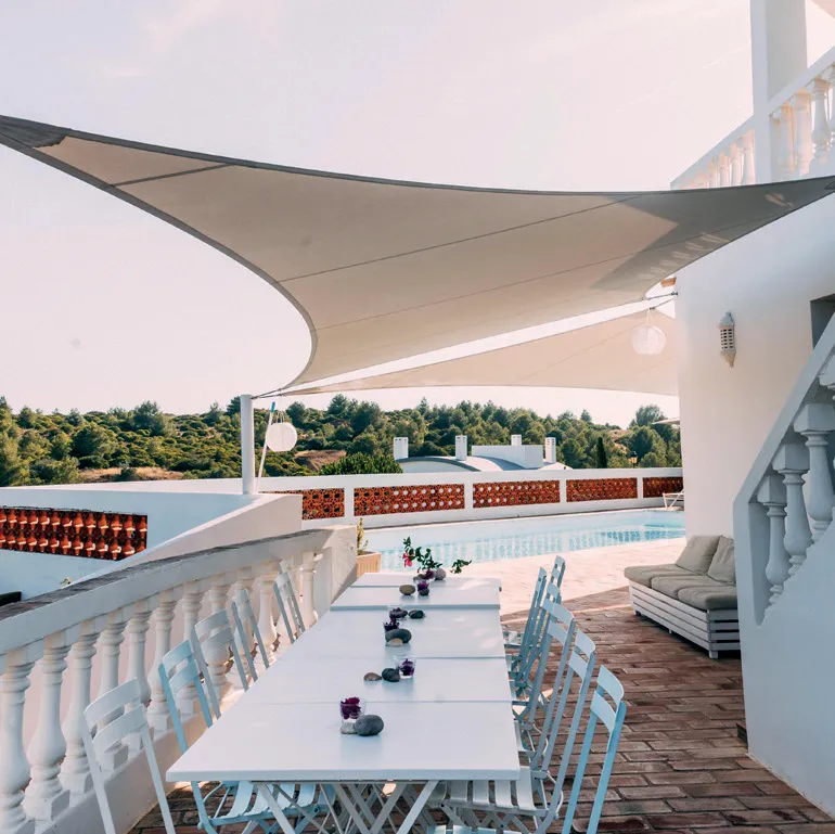 13:30 · Shared lunch in the shaded terrace space with ocean views